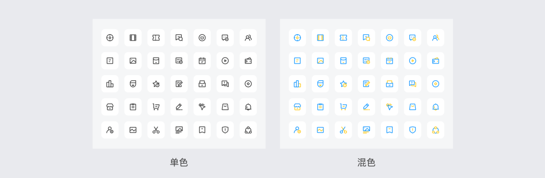 混色:使用二种及以上颜色的图标,混色图标可运用品牌VI系统的配色来增加产品记忆,塑造品牌形象,也可以增加页面的视觉表现力。