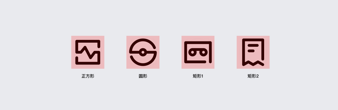 下图是当图标是正方形、矩形、圆形四种形状下的位置,根据上图参考线,我们可以确定图标在画板中的位置。