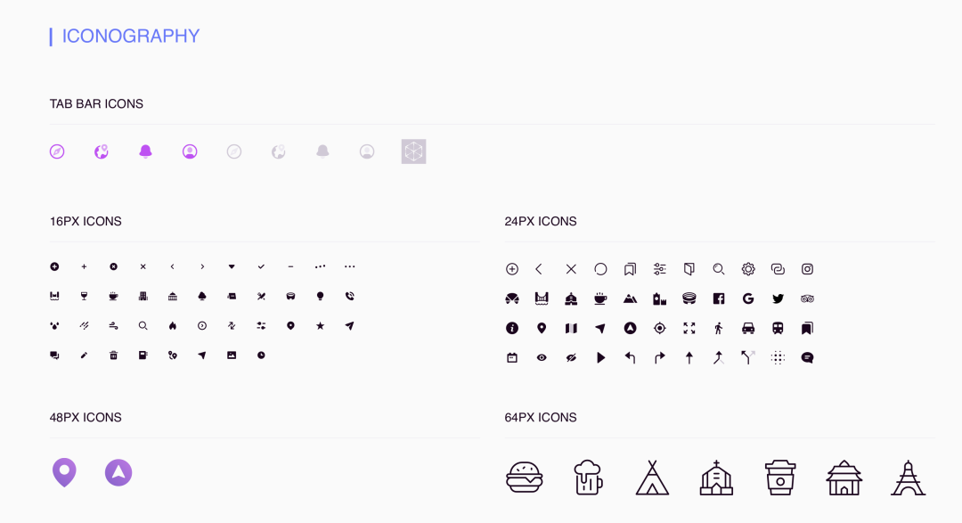 一般产品设计中期,设计师会慢慢形成设计规范文档,便于提高设计效率和团队协作,其中图标规范必不可少。图标规范中一般包含产品中所有设计到的图标,一到二种常用尺寸,基础图标以及其他图标。