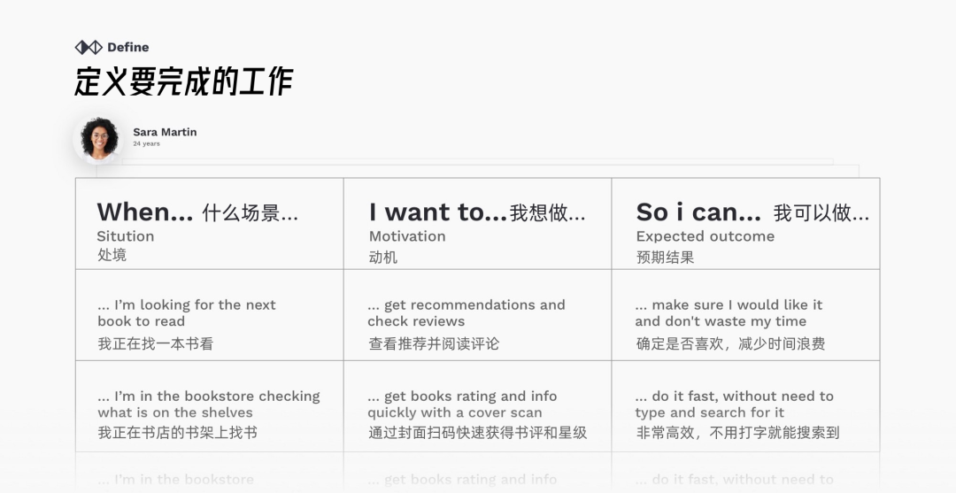 你可以做很多事情来更好地理解用户,建立同理心。用户旅程和价值主张是有用的,但当我们谈论一些小事时,并不总是有时间去做这些事情。另一方面,用户画像是空洞的、虚拟的,而且几乎没有实际的应用价值。你能做的一件重要的事就是列出要做的工作。这将帮助你了解用户的动机和期望。