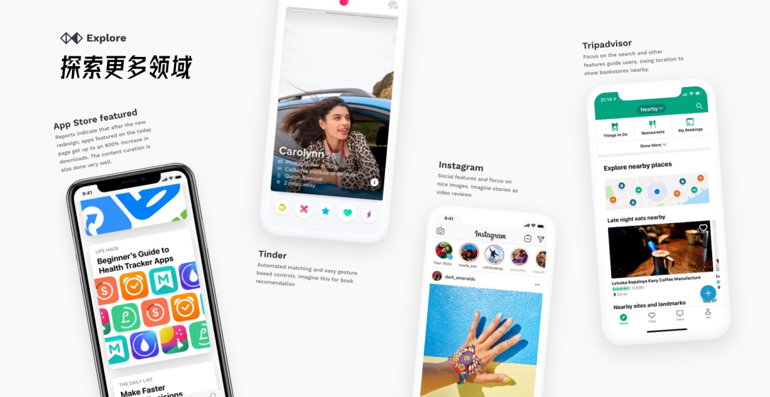 竞品的分析永远不会带来新鲜的想法和创新。当每个人都密切关注彼此时,你只能学习被认为是标准的东西。为了获得灵感,要看你的领域之外。有数百种神奇的产品可以解决类似的问题,而你需要在不同的环境下解决这些问题。